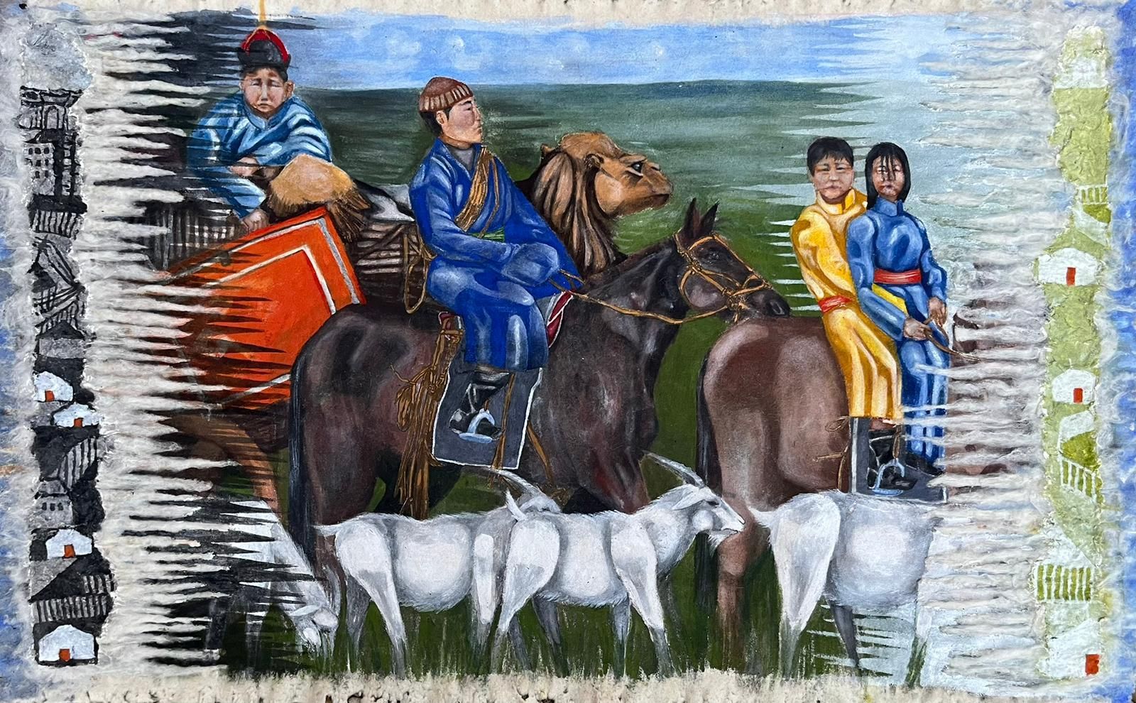 Giulia, da studentessa e da giovane artista, ha sempre avuto idee chiare e determinate: la sua ricerca l'avrebbe dedicata alla Mongolia e al suo mondo culturale e artistico. E così è stato: la sua tesi si intitola “ARTE MONGOLA - Un viaggio nomade sotto l’eterno cielo blu”. Le immagini allegate testimoniano sia della sua tesi scritta, sia di alcune delle sue opere, sia della riproduzione in scala di una ger mongola (parte integrante della sua ricerca).